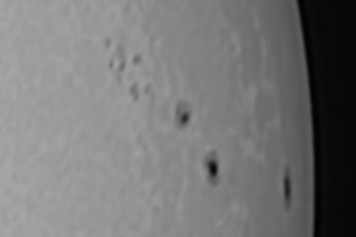 Sonne am 7.7.2013 mit 80/1200 mit 2-fach Konverter und Logitech Webcam (Autostakkert + Fitswork) |